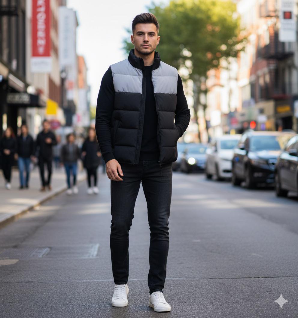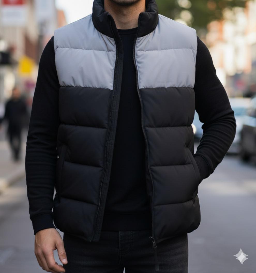 Αυτό το ανδρικό αμάνικο μπουφάν είναι μια εξαιρετική επιλογή για τους πελάτες που αναζητούν ένα μοντέρνο, κομψό και λειτουργικό κομμάτι που ξεχωρίζει. Ο δίχρωμος σχεδιασμός του το καθιστά ιδιαίτερα ελκυστικό!
