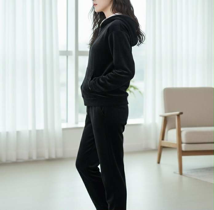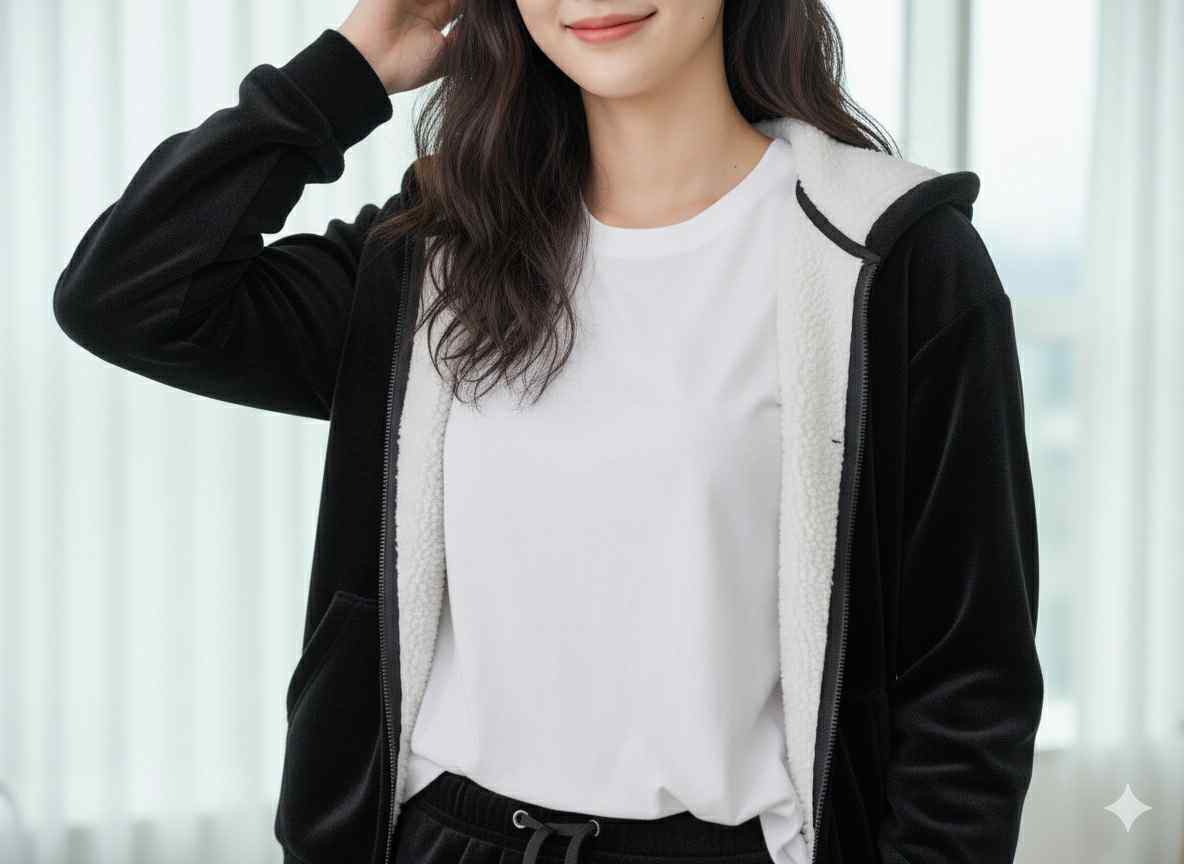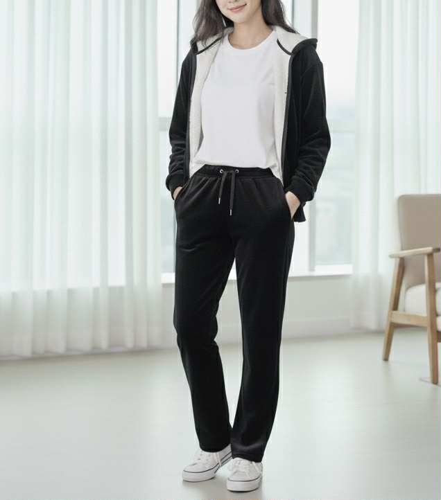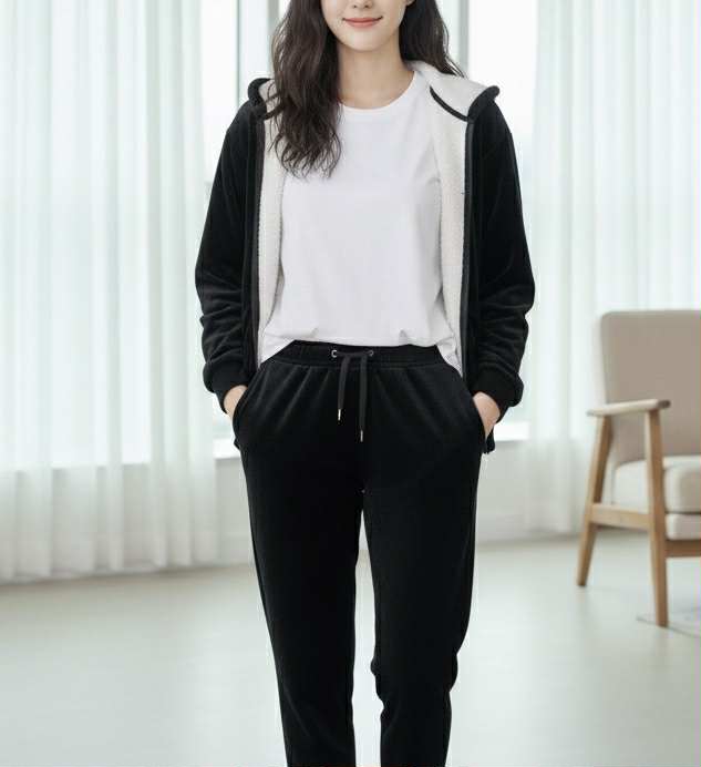 Τίτλος: Αψεγάδιαστη Κομψότητα & Ζεστασιά: Μαύρο φλις Σετ Φόρμας με Επένδυση Sherpa
