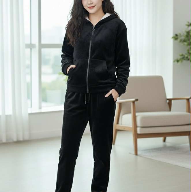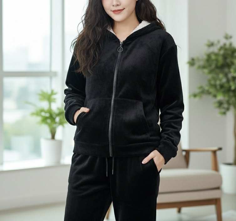 Ανακαλύψτε το απόλυτο σύνολο που συνδυάζει αβίαστα την πολυτέλεια, την αψεγάδιαστη εμφάνιση και την απόλυτη ζεστασιά! Αυτό το κομψό βελουτέ σετ φόρμας σε κλασικό μαύρο χρώμα διαθέτει μια πλούσια εσωτερική επένδυση Sherpa (τύπου teddy bear fleece), καθιστώντας το την ιδανική επιλογή για όσες αναζητούν απαράμιλλη άνεση και στυλ, είτε για χαλάρωση στο σπίτι, είτε για εντυπωσιακές casual εμφανίσεις τις κρύες ημέρες.